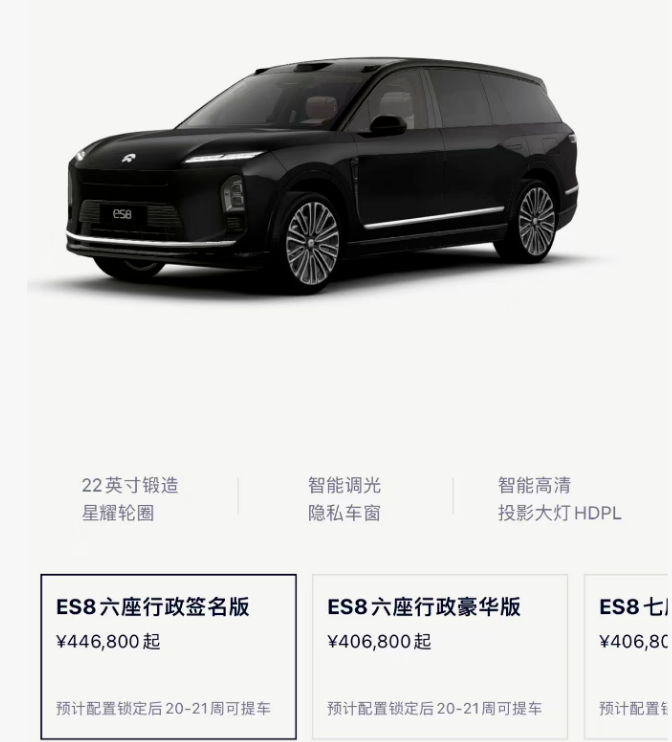 同样面临长等待的还有蔚来全新ES8。这款在41天内交付量破万的大型纯电SUV,因订单远超预期,即便官方在11月宣布将月产能提升70%,等待时间依然不短,新订用户下定后需等待5个月左右。