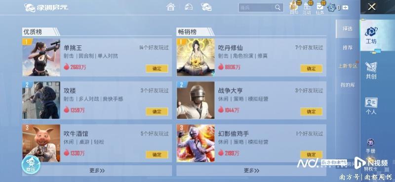 UGC平台为开发者提供了一片可以快速验证成果、低成本投入的游戏沃土。来自成都的UGC游戏制作团队呆小凡工作室负责人告诉南都N视频记者,其在《和平精英》上的“吃丹修仙”玩法单月分成收入已突破2000万元。